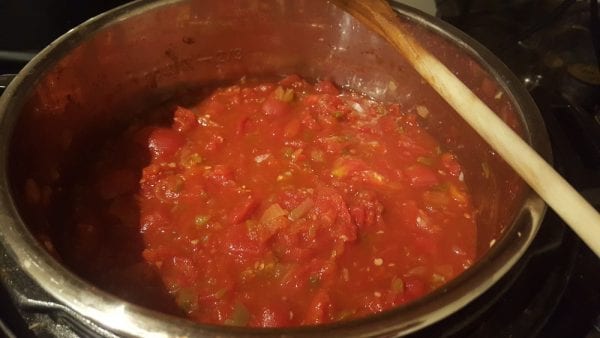 In a 6 qt Instant Pot, add all ingredients. Dump the drained tomatoes first. If 2/3 or more of the Instant Pot is filled after dumping in your drained tomatoes, use a 1-cup measuring cup to scoop out excess tomato juice until the Instant Pot is 1/2 filled. Then add the remainder of the ingredients and give it a quick stir with a wooden spoon.